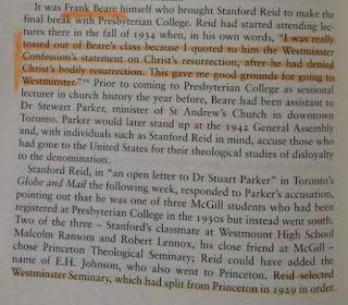 Stanford Reid had no choice, he had to find a more balanced seminary where one won't be tossed out of lectures like that. He chose Westminster Theological Seminary in Philadelphia, and was accused of disloyalty by his denomination for doing so.